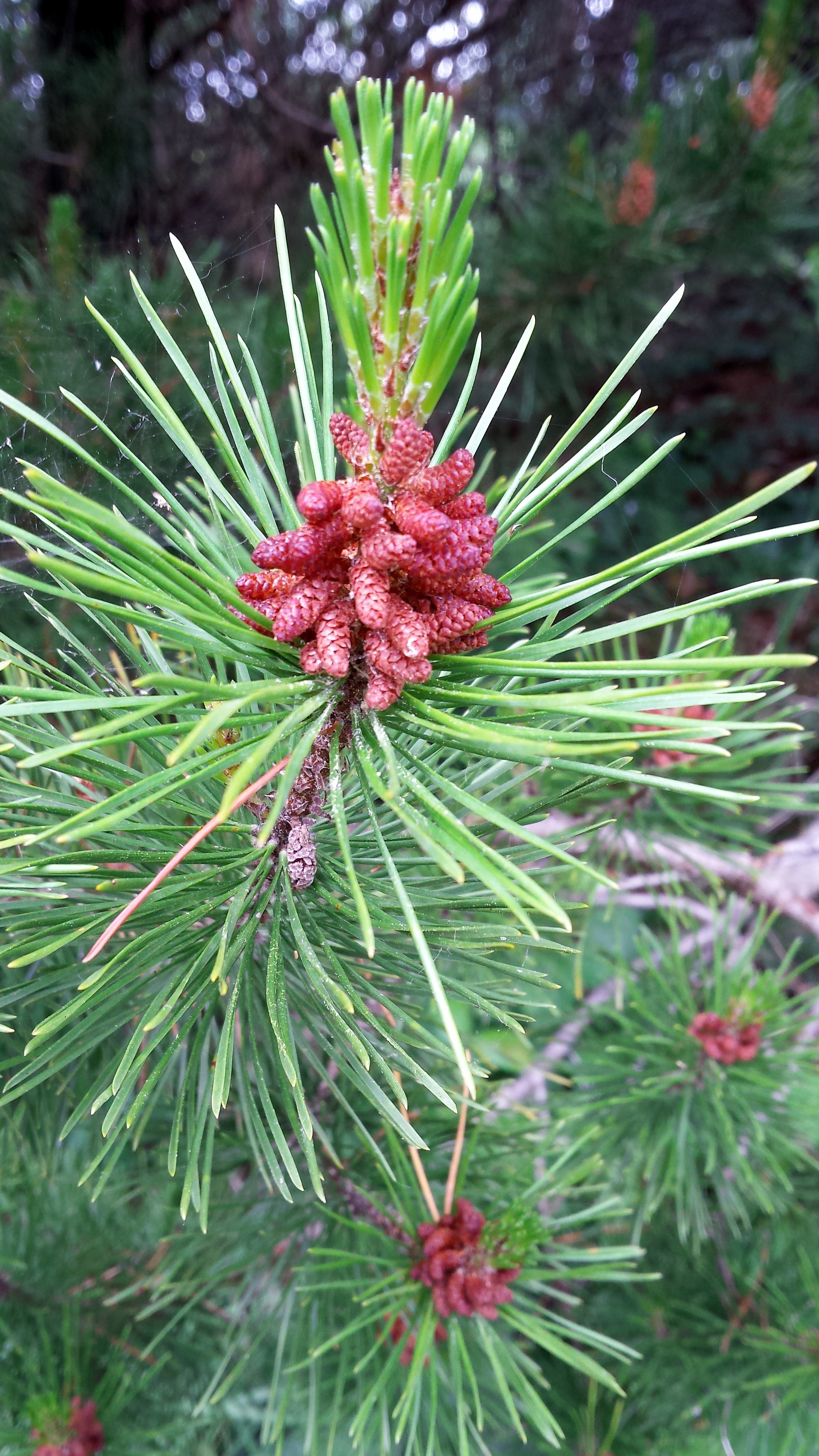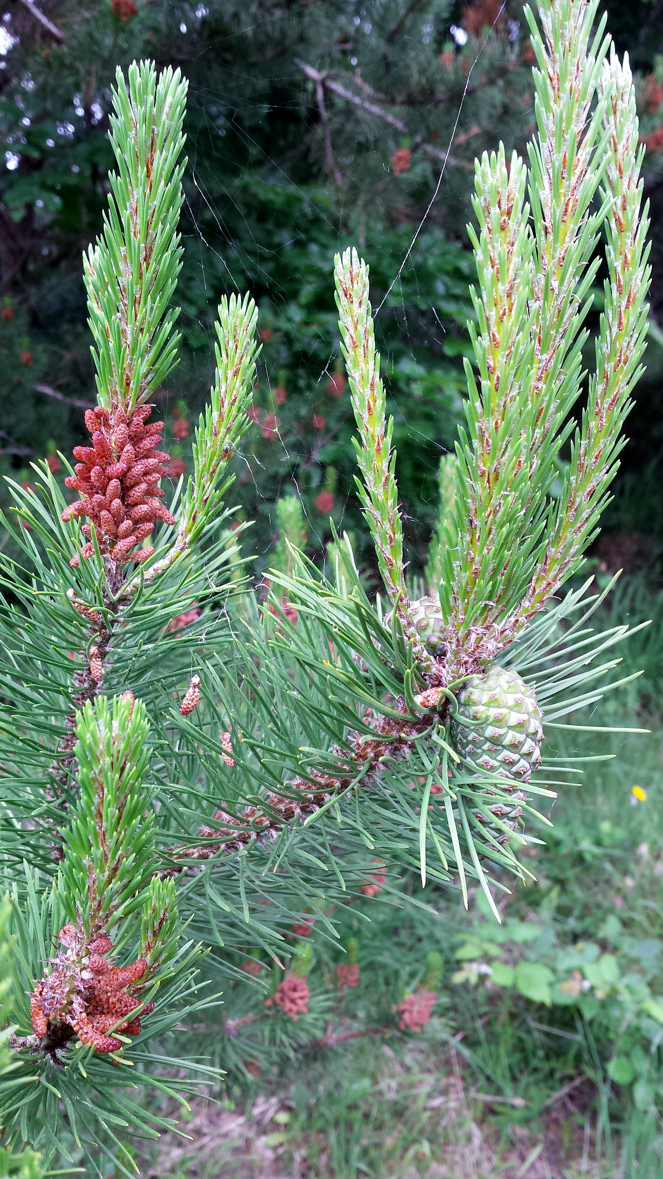 Look carefully and you will see the light dust of pollen on the needles and spider web.